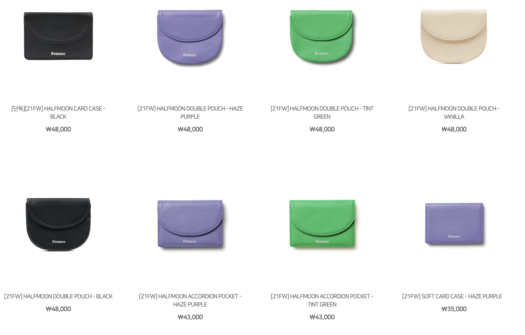 페넥에서 구입할 수 있는 반지갑의 디자인 및 가격 확인